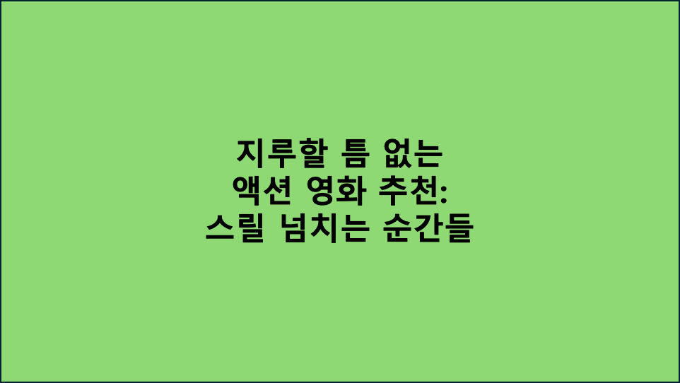 지루할 틈 없는 액션의 세계, 오늘 소개해드린 7편은 스릴, 속도, 전략, 인간 드라마까지 다양한 재미를 선사합니다. 단지 빨리 지나가는 장면보다, 마음이 함께 뛰는 순간을 원하신다면 꼭 보셔야 할 리스트예요. 영화관에서든, 집에서든 놓치지 마세요. 여러분의 액션 최애작도 댓글로 알려주세요. 다음에도 박진감 가득한 콘텐츠로 돌아올게요!